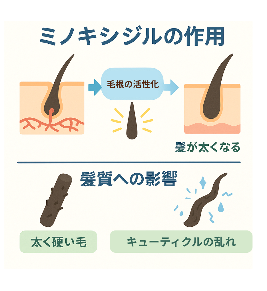 実はミノキシジルは発毛効果だけでなく、髪質や手触りにも影響を及ぼす場合があるのです。