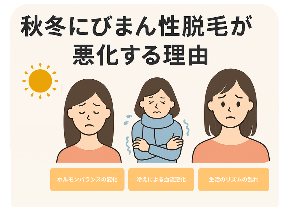 びまん性脱毛は季節の変化に敏感に反応します。特に秋から冬は、頭皮やホルモンバランスに以下のような変化が起こります。